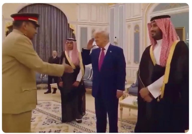 It looks like the Saudi guy is trying to shake his hand and dumbass is saluting him.