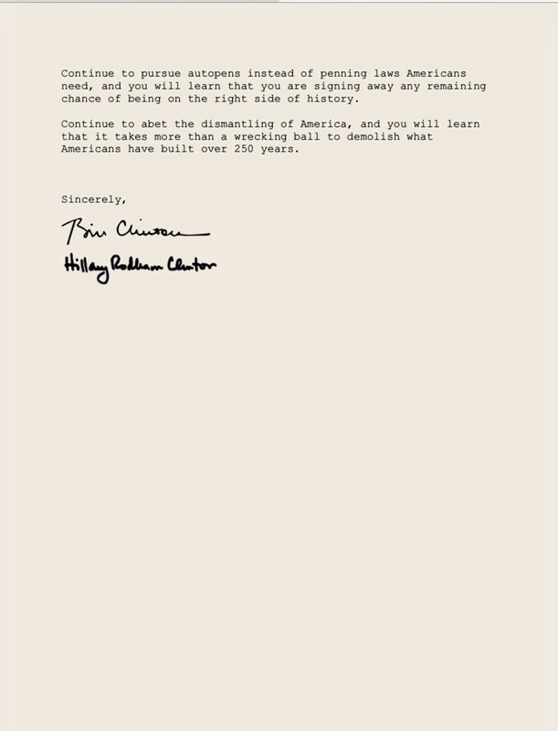 Continue to pursue autopens instead of penning laws Americans need, and you will learn that you are signing away any remaining chance of being on the right side of history
