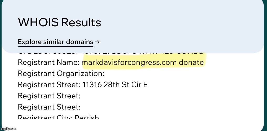 Mark Davis, running in Florida, says he bought domain because Republican party had gone full fascist.