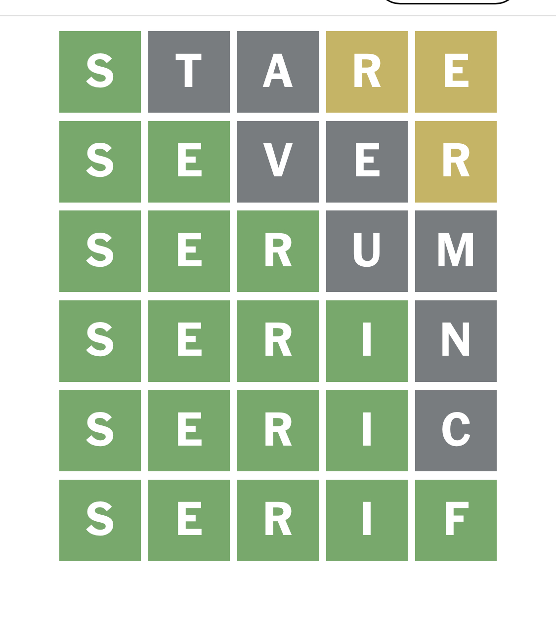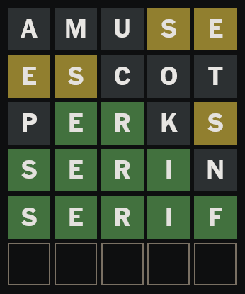 🟩🟩🟩⬜⬜ SERVO (It was a tossup between this and the right answer.)