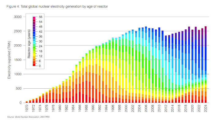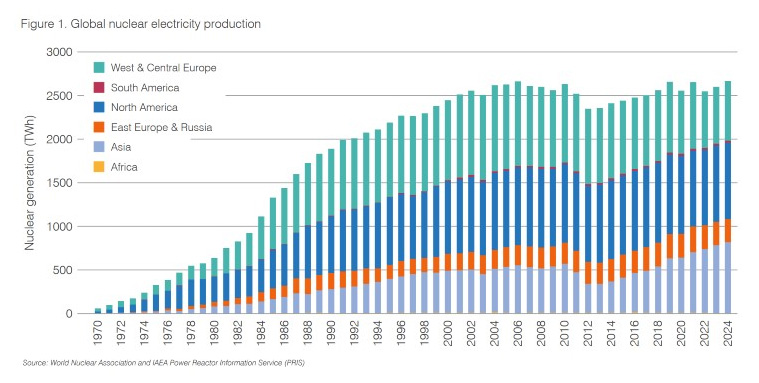 Nuclear reactors worldwide generated 2667 TWh of electricity in 2024, beating the previous record of 2660 TWh which was set back in 2006, according to World Nuclear Performance Report 2025.
