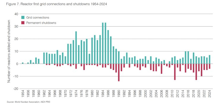 During 2024 seven reactors were connected to the grid - Zhangzhou 1 in China, Vogtle 4 in the USA, Shidaowan Guohe One in China, Kakrapar 4 in India, Flamanville 3 in France, Fangchenggang 4 in China and Barakah 4 in the UAE.