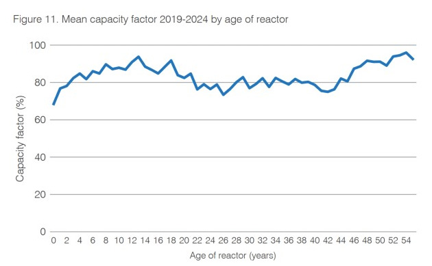 A caveat is that reactors half way their second decade of operation compare well in this respect. This is probably a result of Chinese operational excellence